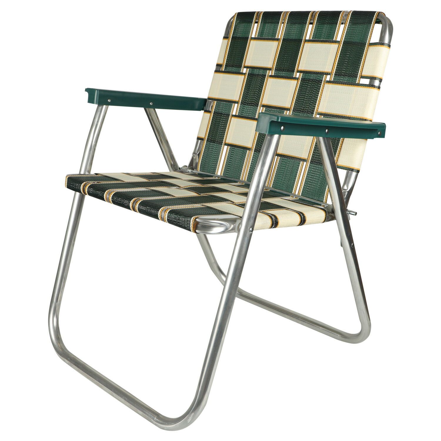 こちらはホワイトとグリーンにさりげないイエローのカラーが映えるピクニックチェアです。