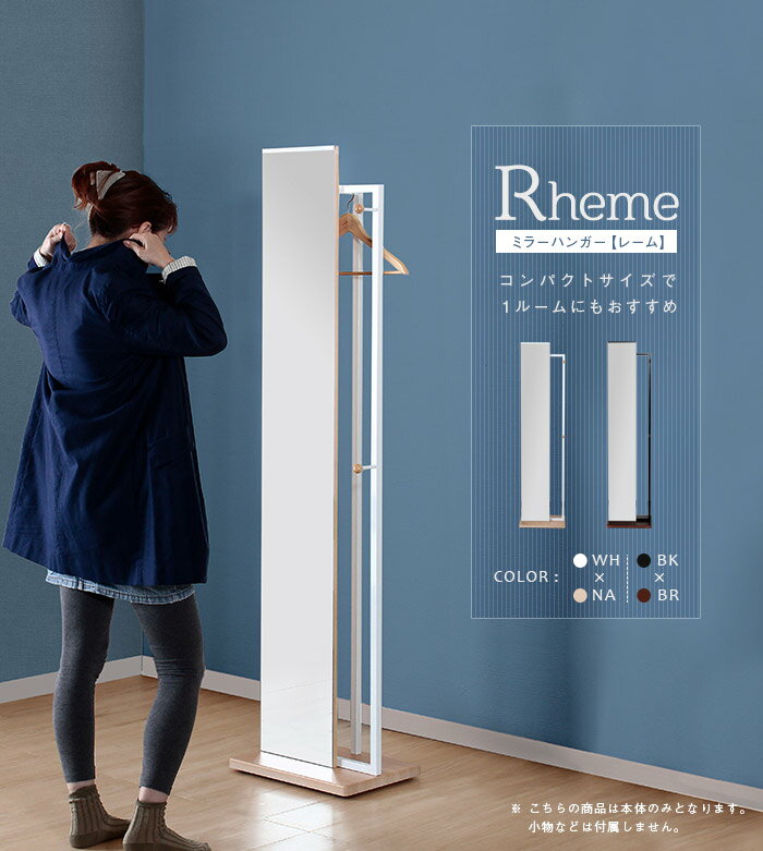 送料無料 ミラー 全身 姿見 鏡 ハンガーラック付き Rheme ミラーハンガー キャスター コートハンガー 衣類 収納 ラック 洋服掛け ハンガーポール スリム コンパクト 省スペース おしゃれ 北欧