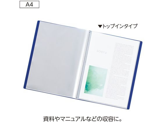 【仕様】●色:インディゴブルー●規格:A4●外寸法:縦306×横228×背幅10mm●材質:表紙/ポリプロピレン(生地厚0.7mm)、ポケット/ポリプロピレン(生地厚0.04mm)●ポケット数:20枚【備考】※メーカーの都合により、パッケージ・仕様等は予告なく変更になる場合がございます。